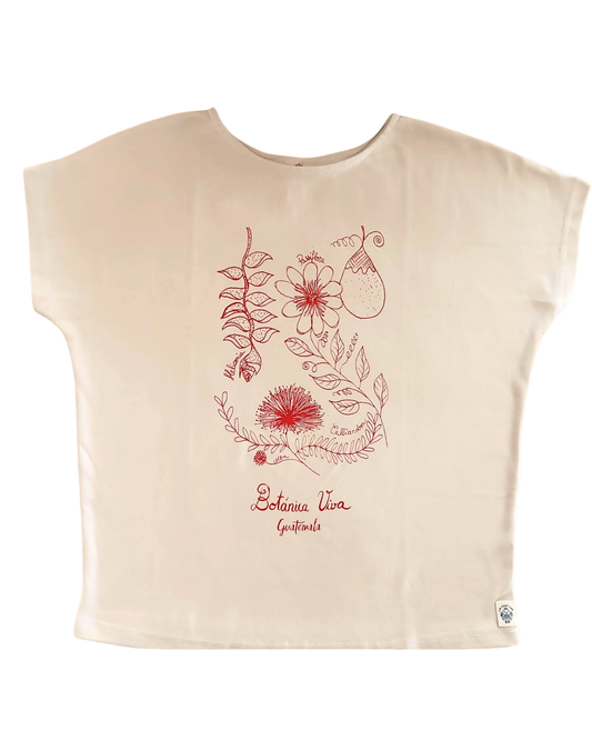 Camiseta Mujer Algodón Orgánico - Botánica Viva Guatemala - Rojo Coral