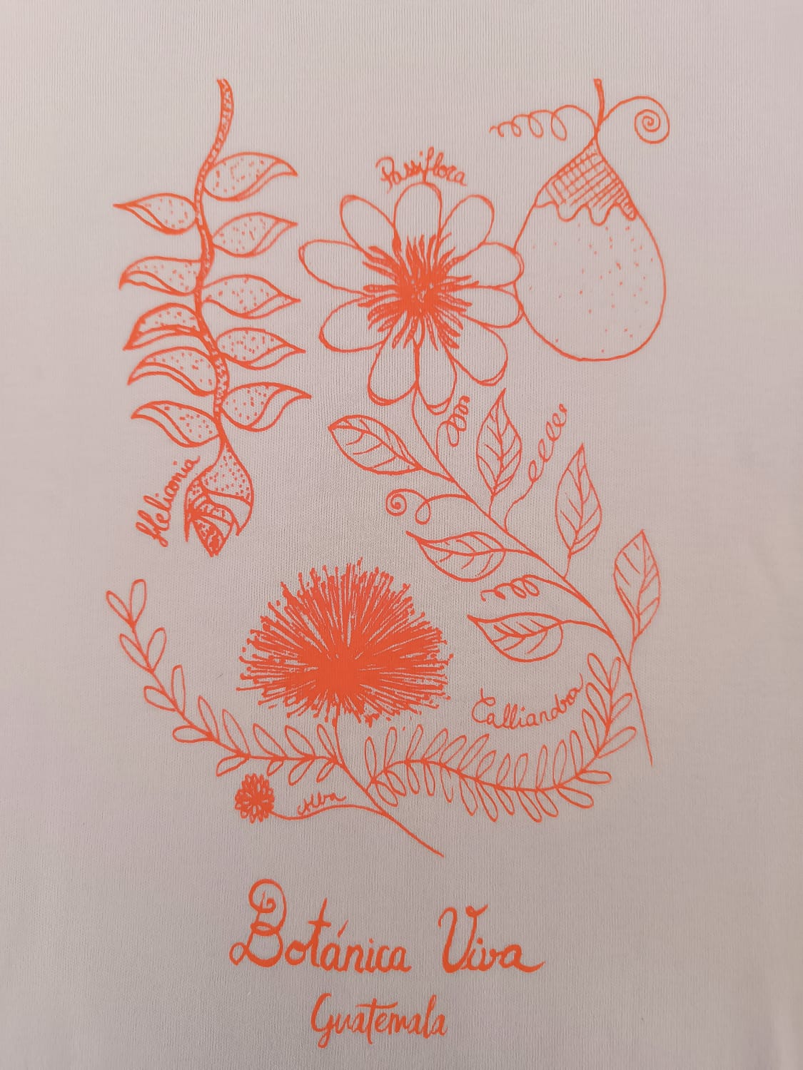 Diseñada a partir de la ilustración original de Alba Escalón, representa distintas formas botánicas y plantas nativas, estampadas en serigrafía a base de agua, una técnica artesanal poco común en Guatemala y más sostenible.